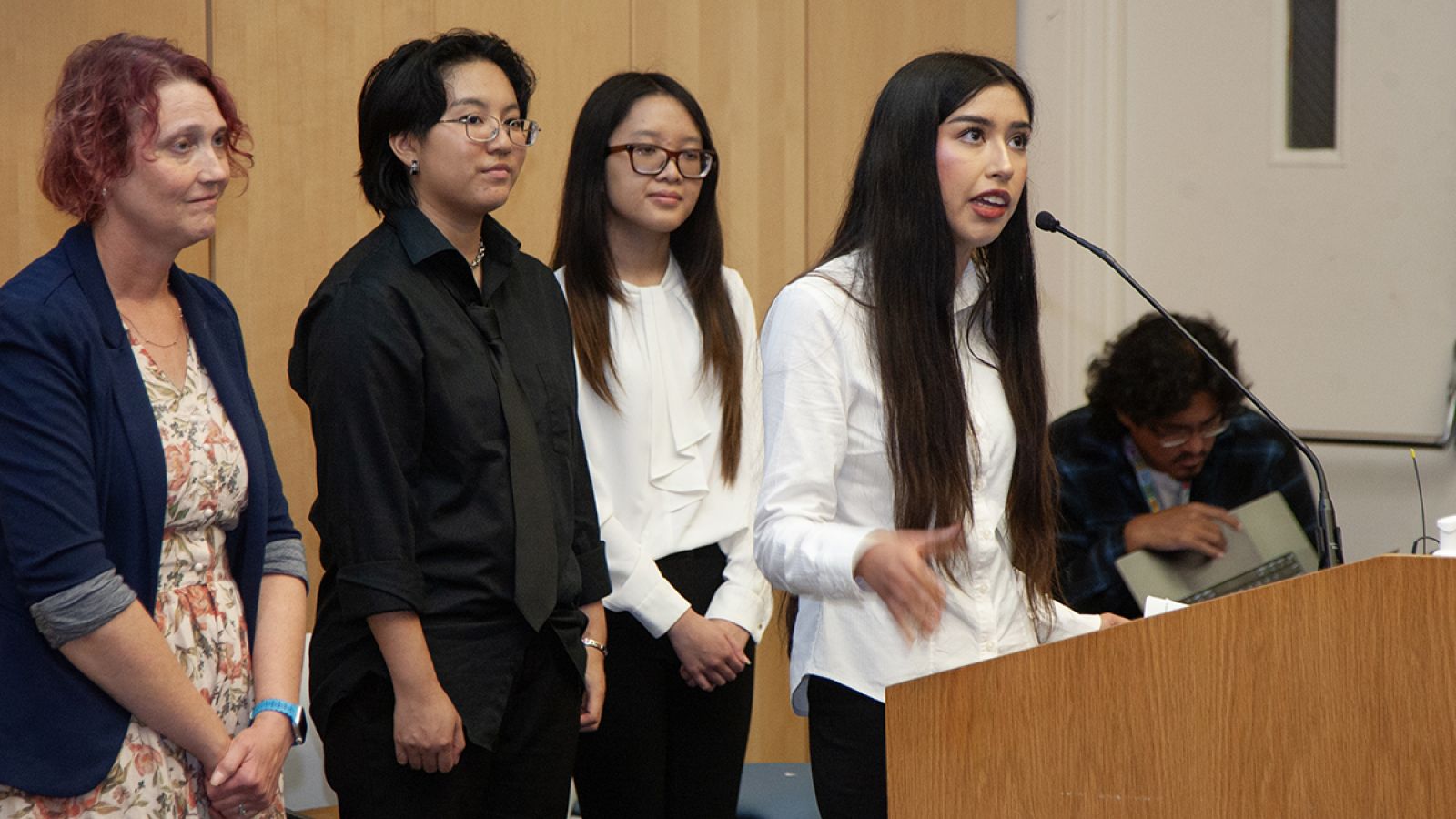 Group of people presenting at podium